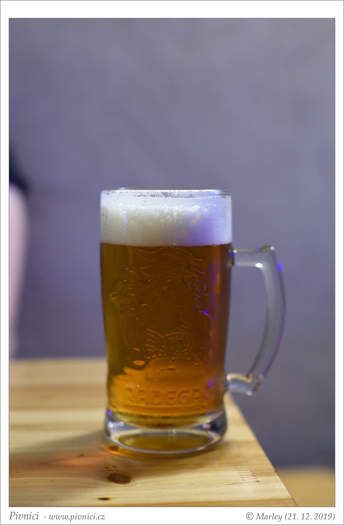 Zlatá barva, čiré. Pěkná světlá pěna, slušně drží.Vůně (3 - dobré):
