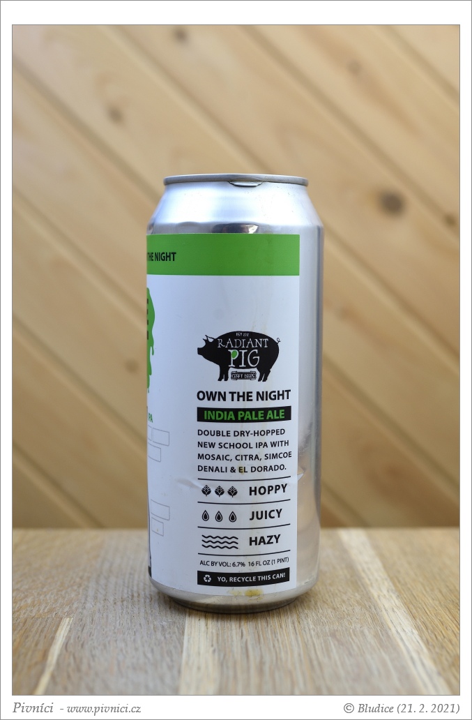 Moc hezky chmelené a výborně pitelné pivo. Zajímavé je v něm aroma kokosů, ač v něm není Sabro ani Sorachi Ace… holt to někdy v kombinaci chmelů tak hezky vyjde :)Vzhled (2,5 - lehce nadprůměr):