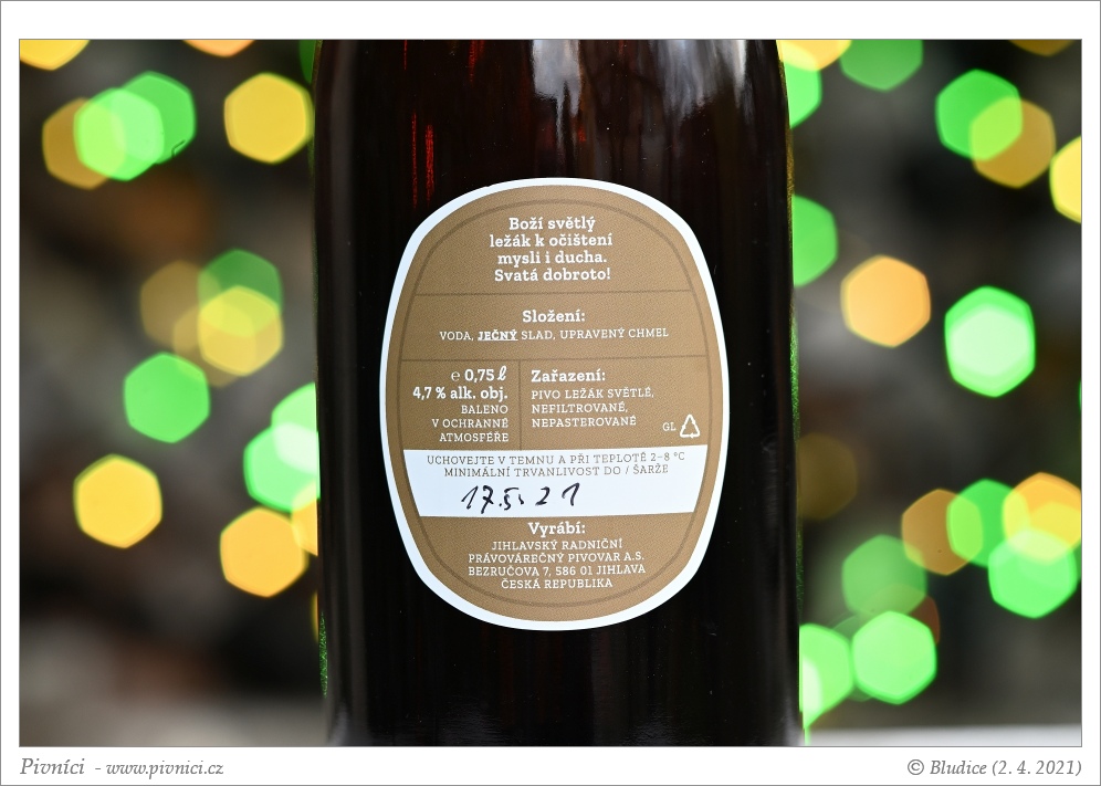 Celkem pitelný ležák, trochu zoxidovaný.Minimální trvanlivost: 17. května 2021