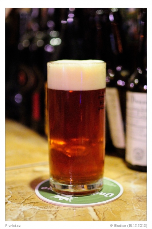 Tmavší měděná barva, čiré, slušná světlá pěna, celkem drží.Vůně (2,5 - lehce nadprůměr):