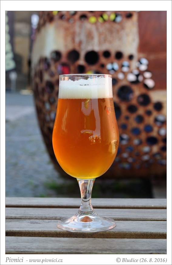 Tmavě zlatá barva, středně zakalené, pěkná světlá pěna, dobře drží.Vůně (1,5 - nedobré):