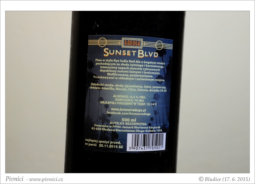 Temně měděná až rubínová barva, čiré, pěkná světlá pěna s okrovým nádechem, dobře drží.Vůně (4 - výborné):