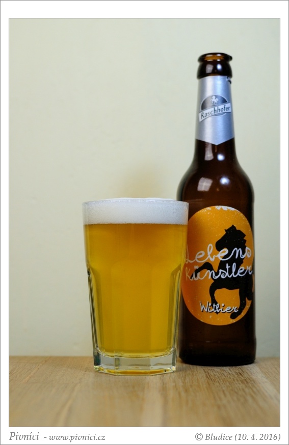 Zlatá barva, lehce zakalené, pěkná světlá pěna, slušně drží.Vůně (3,5 - velmi dobré):