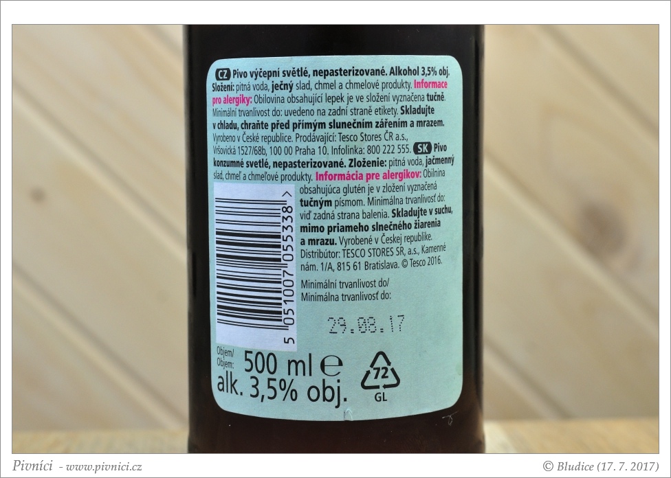 Nedobré máslové pivo. Špatně pitelné.Minimální trvanlivost: 29. srpna 2017