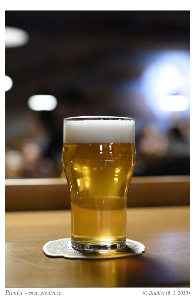 Zlatá barva, téměř čiré. Pěkná světlá pěna, dobře drží, krásně kroužkuje.Vůně (3 - dobré):