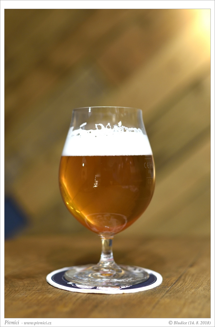 Zlatá barva, lehce zakalené. Pěkná světlá pěna, dobře drží.Vůně (2,5 - lehce nadprůměr):