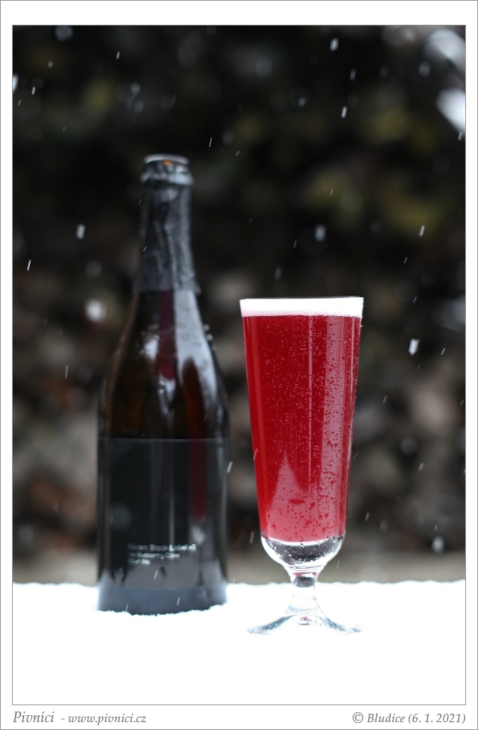 Červená až lehce měděná barva, lehce zakalené. Pěkná světlá pěna s růžovým nádechem, slušně drží.Vůně (4 - výborné):