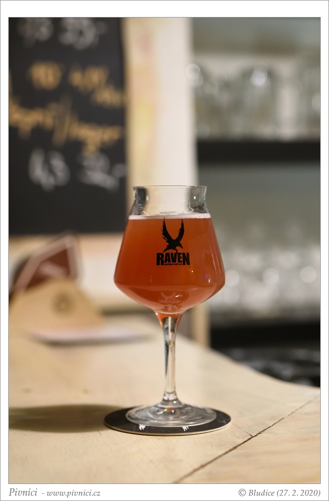 Barva malinová, zakalené. Nižší průměrně stabilní pěna.Vůně (3 - dobré):
