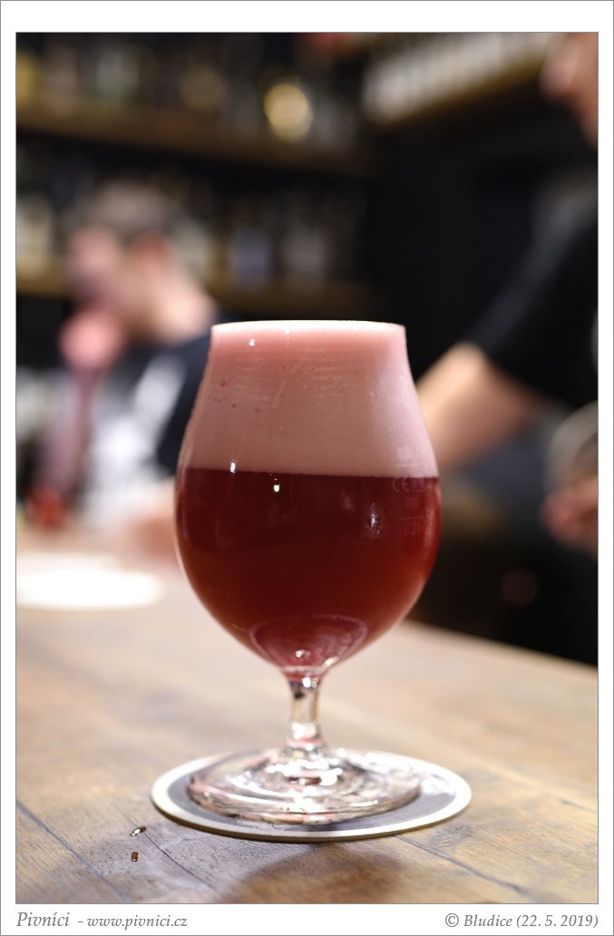 Červená barva, více zakalené. Pěkná růžová pěna, dobře drží.Vůně (3,5 - velmi dobré):