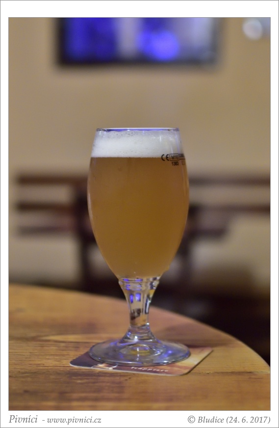 Slámová barva, více zakalené, pěkná světlá pěna, slušně drží.Vůně (3,5 - velmi dobré):