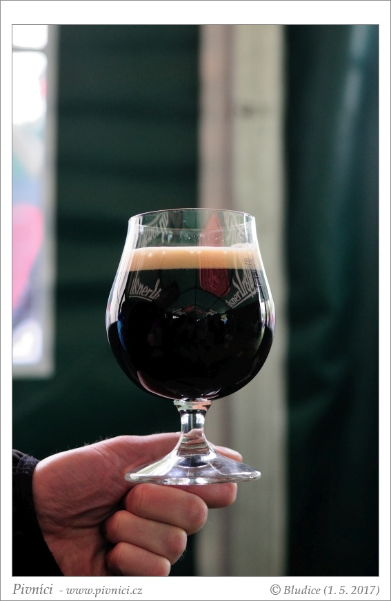 Barva téměř černá. Nižší pěkná hustá poměrně stabilní pěna.Vůně (3 - dobré):