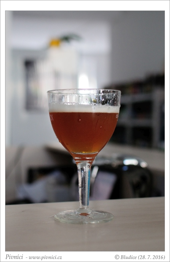 Zlatá barva, velmi lehce zakalené (pět dní odpočívalo v klidu lednice). Pěkná světlá pěna, dobře drží.Vůně (3 - dobré):