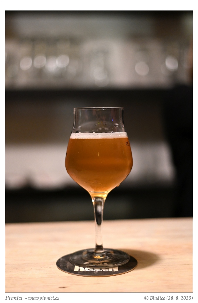 Zlatá barva, lehce zakalené. Pěkná světlá pěna, dobře drží.Vůně (2,5 - lehce nadprůměr):