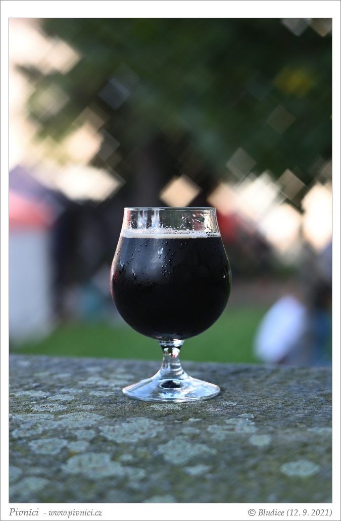 Barva téměř černá. Pěkná hustá průměrně stabilní pěna světle béžové barvy.Vůně (3 - dobré):