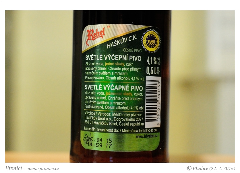 Sotva průměrně pitelné pivo s lehkými vadami.Minimální trvanlivost: 3. března 2022