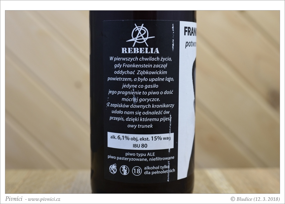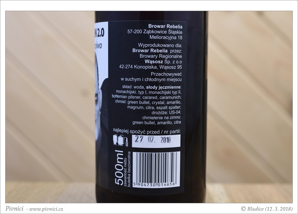 Fajn pivo, pěkně chmelené, možná bych trochu ubrala mnichovského sladu, ale pije se dobře.Minimální trvanlivost: 27. července 2018
