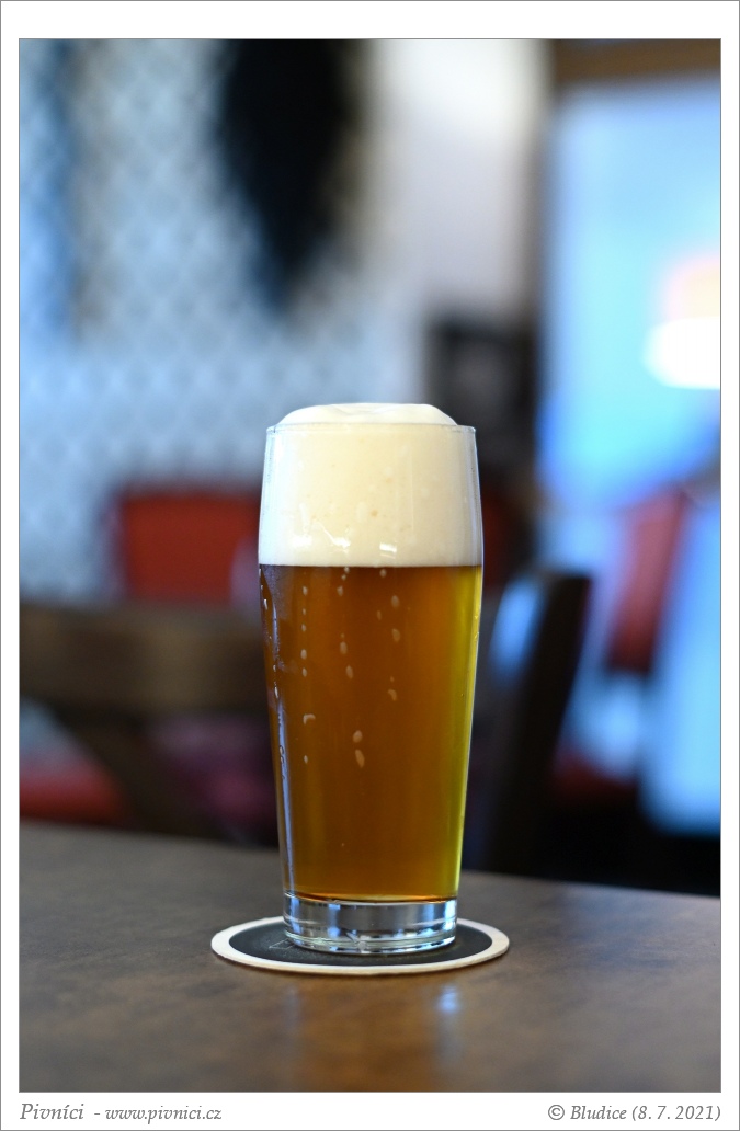 Zlatá barva, lehce zakalené. Pěkná světlá pěna, dobře drží, hezky kroužkuje.Vůně (2 - průměr):