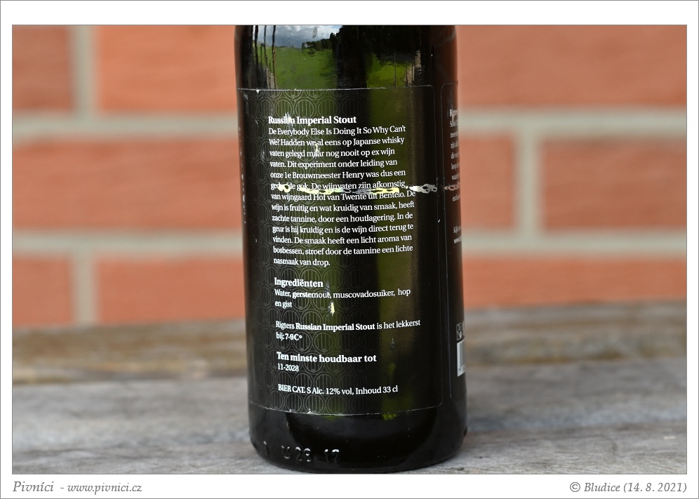 Chuť čokoládová, sušeného ovoce, s tóny červeného vína. Spíše nižší říz, plnější tělo. Hořkost je střední až vyšší, doznívání dlouhé, hořké čokolády, sušené ovoce (švestky, višně, rozinky), trochu červeného vína, trochu karamelové, dřevité, vanilkové.Celkový dojem (9 - výjimečné pivo):