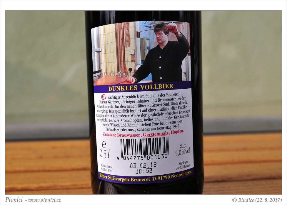 Pivo výrazně chutnající po tmavších sladech, docela hutné, dobře pitelné. Jen v zimě by asi bylo lepší než v parném létě.Minimální trvanlivost: 3. února 2018