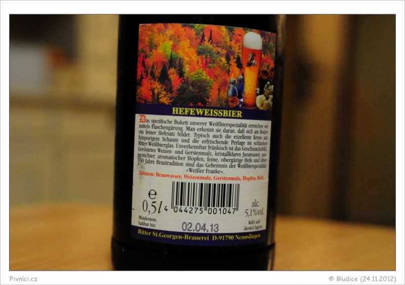 Barva tmavě slámová, silně zakalené. Pěkná hustá stabilní pěna.Vůně (3,5 - velmi dobré):