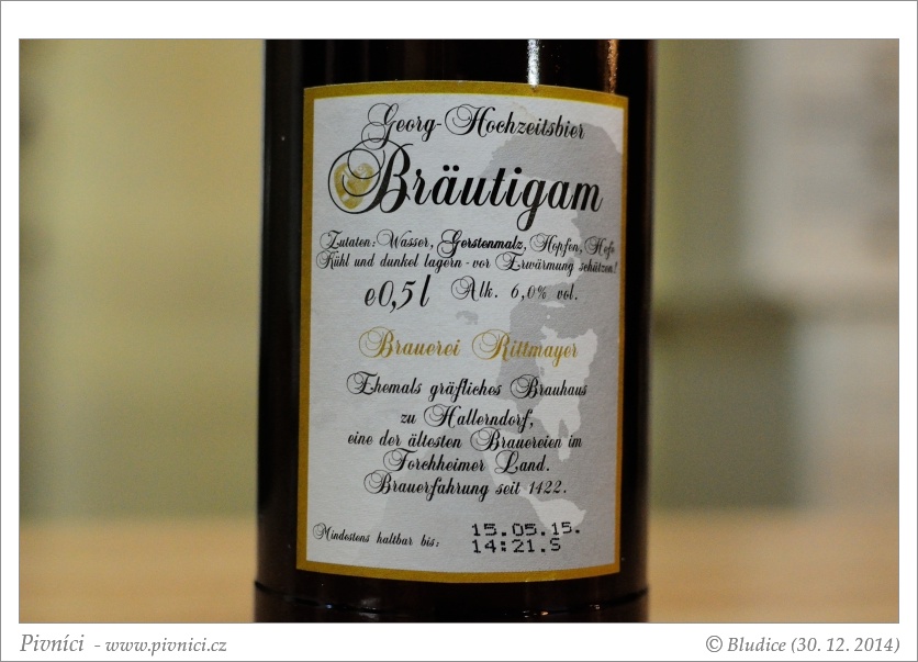 Světle zlatá barva, lehce zakalené (odpočívalo v lednici přes 14 dní), pěkná bílá pěna, dobře drží.Vůně (4 - výborné):