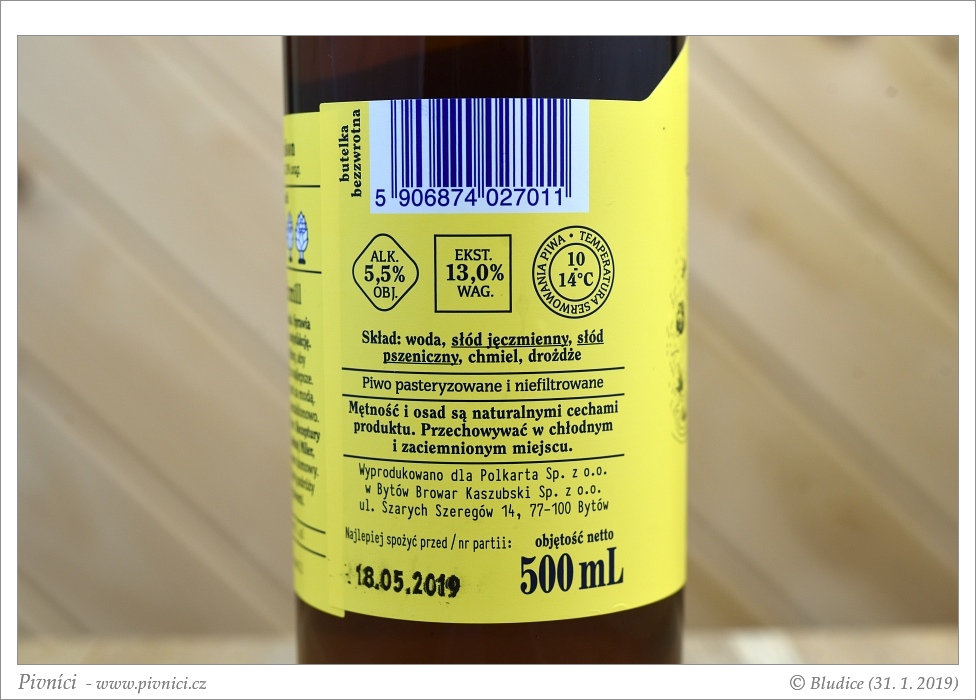 Chutné pivo, velmi dobře se popíjí.Minimální trvanlivost: 18. května 2019