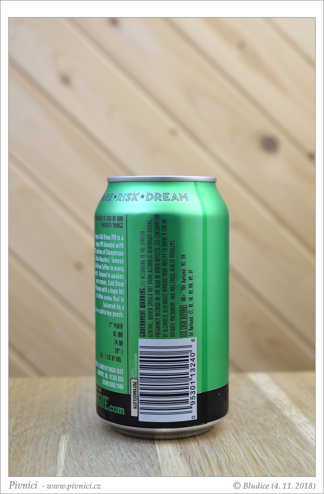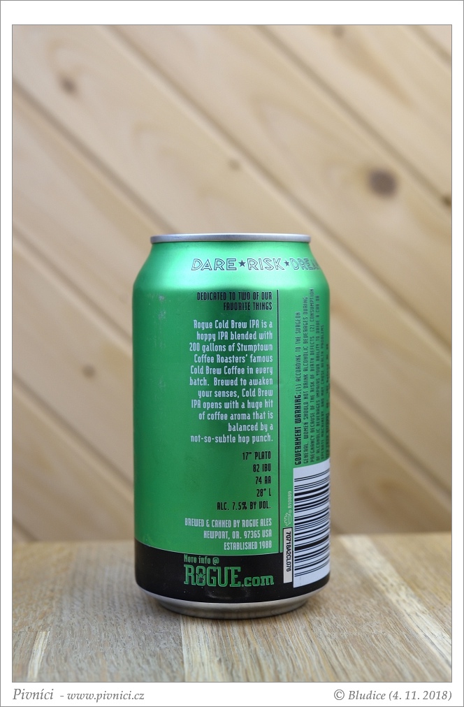 Složení podrobně: ječné slady Rogue Farms Dare™ & Risk™, slad Crystal 40L, slad Kiln Coffee, cold brew káva z portlandské pražírny Stumptown Coffee Roasters