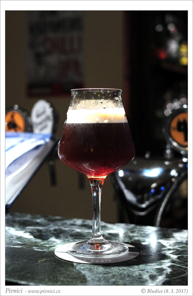 Tmavě měděná až rubínová barva, středně zakalené, nízká světlá pěna, celkem drží.Vůně (4 - výborné):