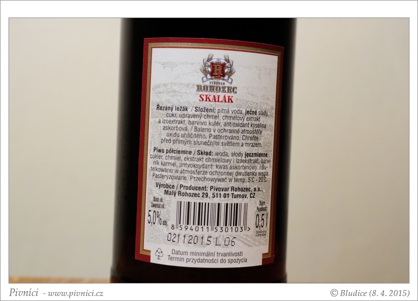 Celkem prokvašený ležák, s trochu méně příjemnou hořkostí, ale jinak je slušně pitelný.Minimální trvanlivost: 2. listopadu 2015