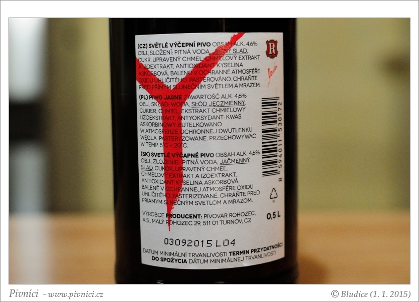 Tmavší zlatá barva, čiré, pěkná bílá pěna, průměrně drží.Vůně (2 - průměr):