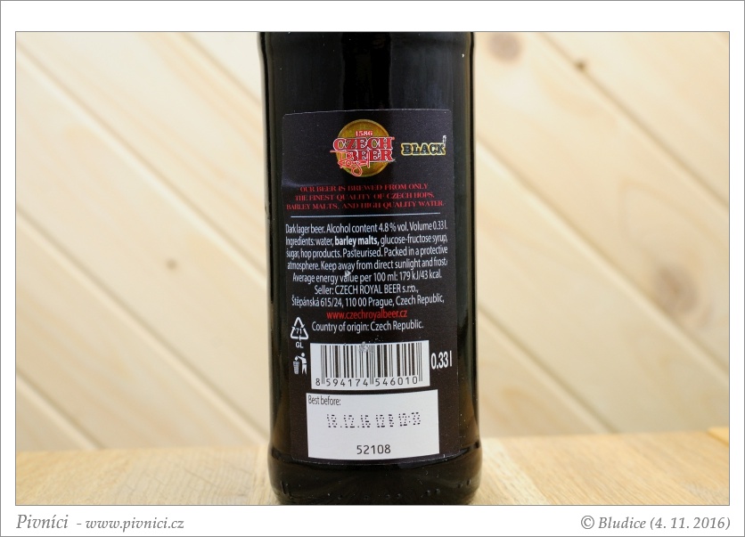 Sladké tmavé pivo s méně příjemnou hořkostí.Minimální trvanlivost: 18. prosince 2016