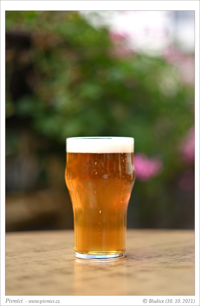 Zlatá barva, čiré. Pěkná světlá pěna, dobře drží.Vůně (2,5 - lehce nadprůměr):