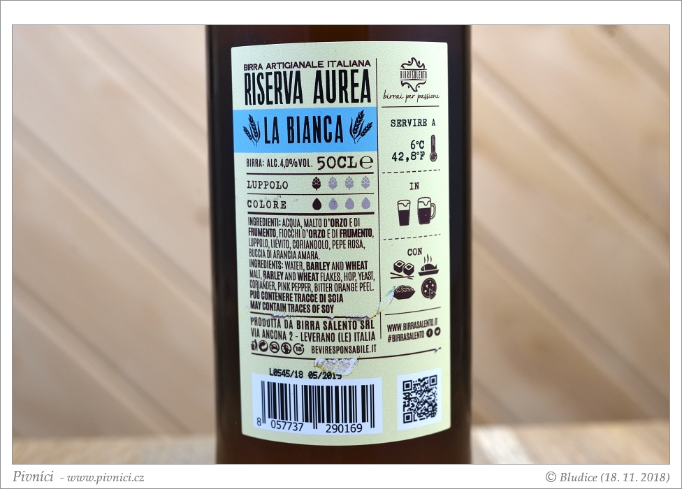 Osvěžující witbier, dobře se popíjí.Minimální trvanlivost: 31. května 2019