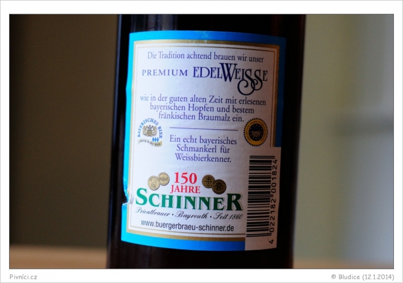 Slámová až zlatá barva, více zakalené, slušná bílá pěna.Vůně (3,5 - velmi dobré):