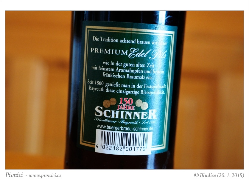 Světle zlatá barva, čiré, pěkná bílá pěna, dobře drží, lehce kroužkuje.Vůně (3 - dobré):