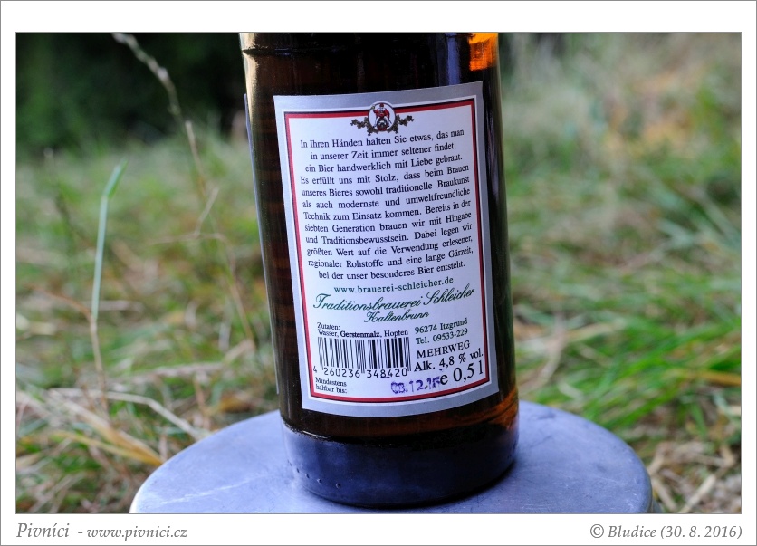 Máslovější, spíše hůře pitelné pivo.Minimální trvanlivost: 8. prosince 2016