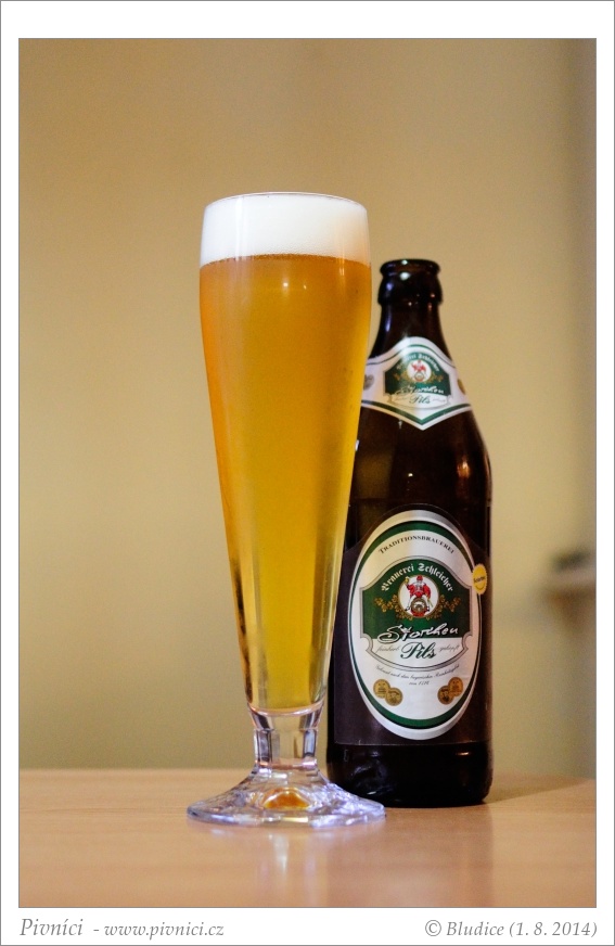 Světle zlatá barva, čiré, pěkná bílá pěna, celkem drží.Vůně (2,5 - lehce nadprůměr):