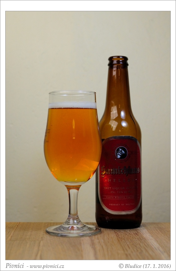 Zlatá barva, čiré, pěkná světlá pěna, slušně drží.Vůně (3,5 - velmi dobré):