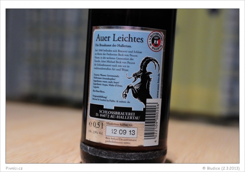 Na takovéto slabší pivo je to vydařený kousek. Přirozeně poněkud prázdnější, ale bez rušivých chutí a vůní.Minimální trvanlivost: 12.9.2013