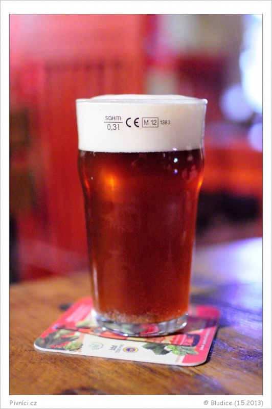 Mahagonová barva, více zakalené, slušná světlá pěna s okrovým nádechem.Vůně (4 - výborné):