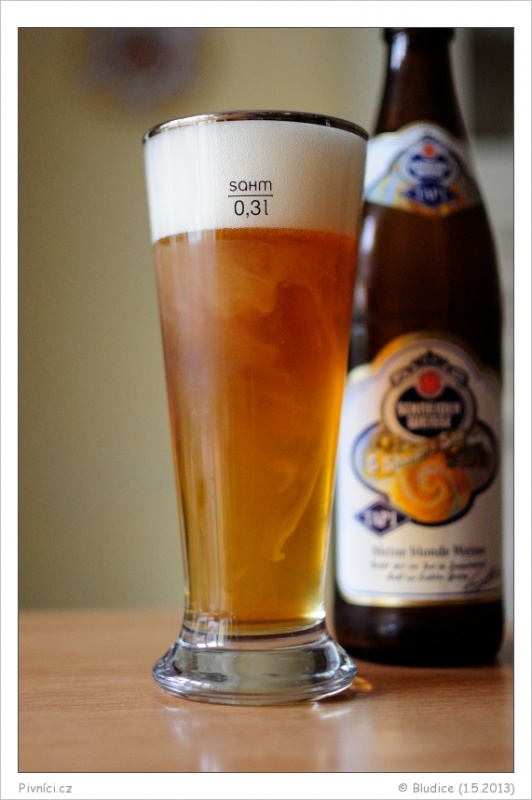 Barva slámová, silně zakalené. Pěkná hustá stabilní pěna.Vůně (4 - výborné):