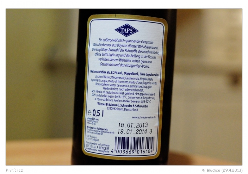Vydařená chmelená pšenice, velmi zajímavá, výrazně ovocná.Minimální trvanlivost: 18.1.2014
