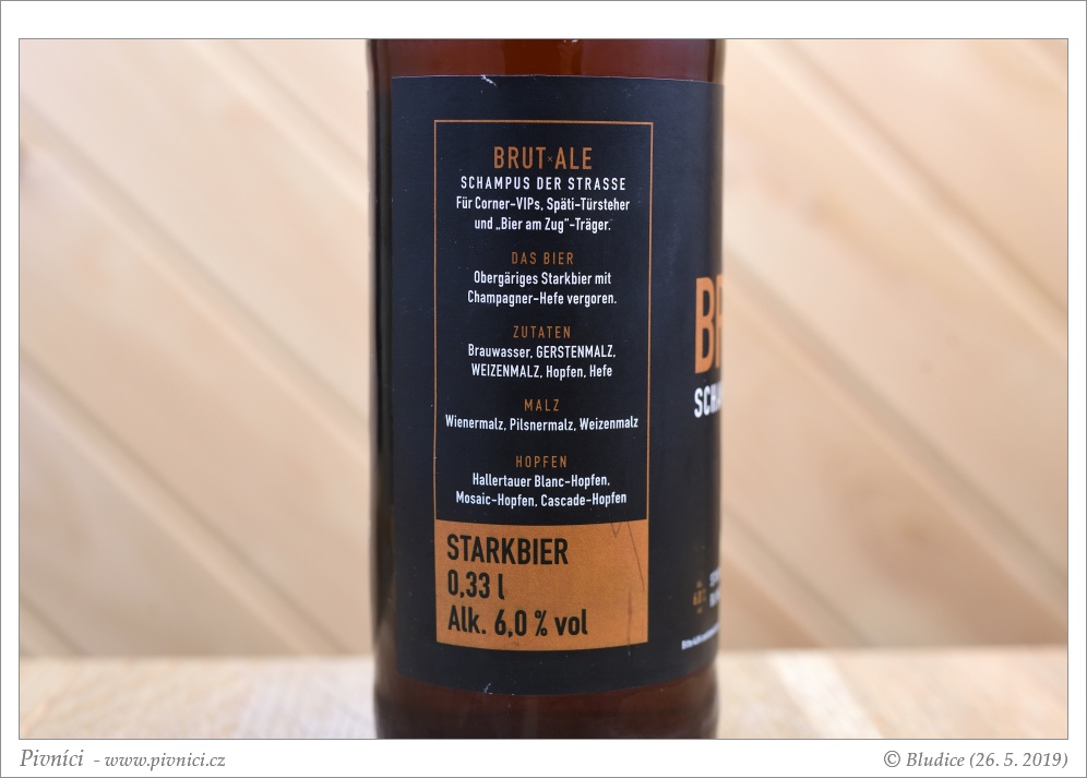 Trochu zvláštní pivo – poměrně výrazné toustové tóny vídeňského sladu bych v pivu podobného typu nečekal. Ale jinak je zajímavé a velmi dobře pitelné.Minimální trvanlivost: 28. prosince 2019