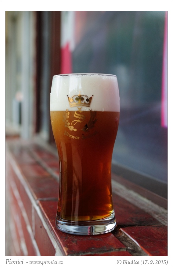 Měděná barva, téměř čiré, pěkná světlá pěna s okrovým nádechem, velmi dobře drží. Načepováno prudce najednou s lavinovým efektem.Vůně (2,5 - lehce nadprůměr):