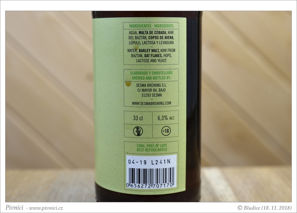 Vůně sladová, ovocná (kiwi), trochu nakyslá a pomerančová.Chuť (3,5 - velmi dobré):