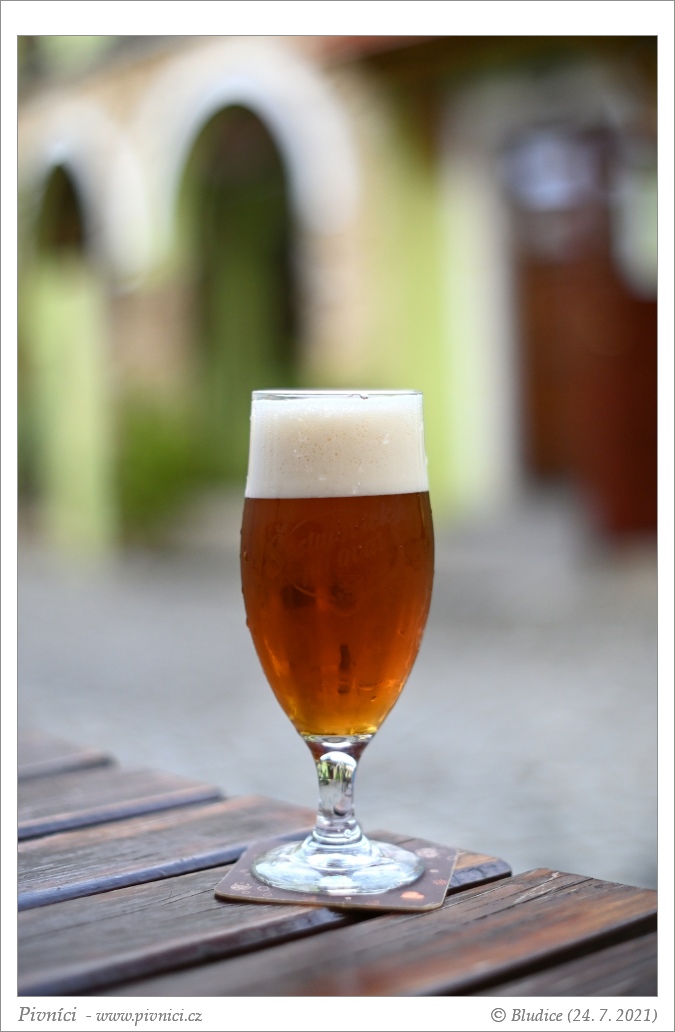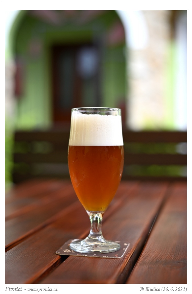 Tmavě zlatá barva středně zakalené. Pěkná světlá pěna, dobře drží.Vůně (2,5 - lehce nadprůměr):