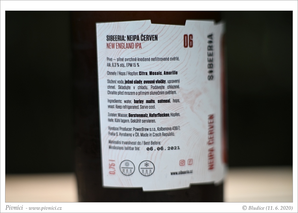 Chutná NEIPA, velmi dobře se popíjí.Minimální trvanlivost: 6. června 2021
