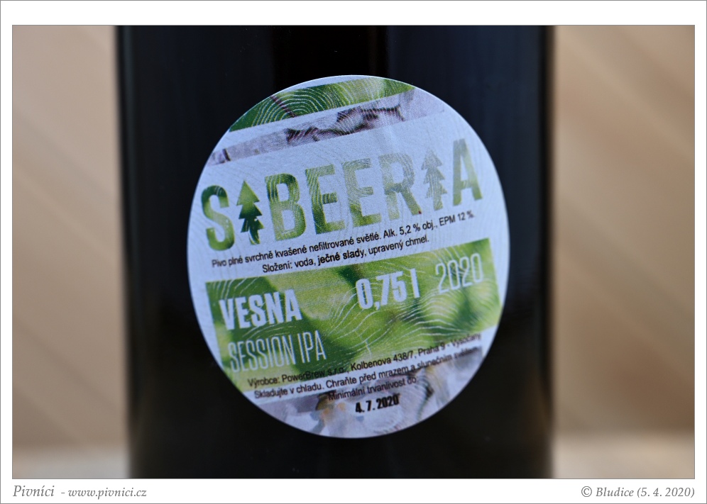 Zlatá barva, téměř čiré. Pěkná světlá pěna, dobře drží.Vůně (3,5 - velmi dobré):