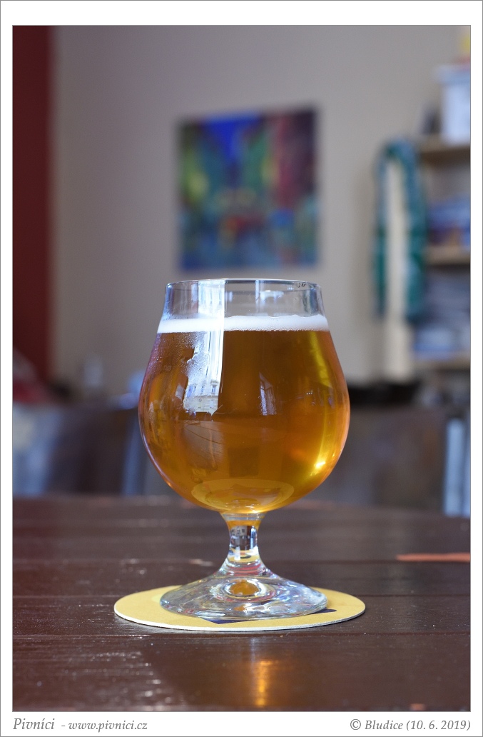 Tmavší zlatá barva, velmi lehce zakalené. Pěkná světlá pěna, dobře drží.Vůně (2,5 - lehce nadprůměr):
