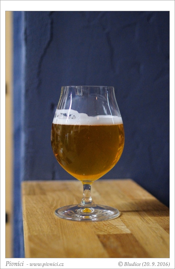 Zlatá barva, téměř čiré, pěkná světlá pěna, dobře drží.Vůně (3,5 - velmi dobré):